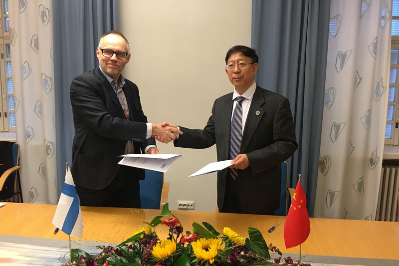 在芬兰哈姆应用科技大学(HAMK University of Applied Science),孙宝国校长与佩特里•普萨里(Pertti Puusaari)校长进行了会谈,并签署了新一阶段的交换生项目协议。双方回顾了合作历史,对彼此在国际化发展、办学特色、优势学科方面做了深入沟通,共同表达了增加并深化合作的意向。双方另就教师互派、合作研究、2+2双学位项目等事宜进行了深入讨论。孙宝国校长还介绍了国家的双一流建设及我校国际化发展目标。佩特里•普萨里校长表达了希望北京工商大学学生与芬兰哈姆应用科技大学学生共同完成企业项目的意愿,详细介绍了该校专职教师培训项目,欢迎北工商的老师和学生访问学习。此外,孙宝国校长一行还实地调研了哈姆应用科技大学礼堂、图书馆、食堂、MBA教研室等场馆及办公室的运营及管理、设计理念以及该校教师的工作模式和学生的学习模式。哈姆应用科技大学技术学院院长拉西•马蒂凯那(Lassi Martikainen)、企业与商务学院院长乌拉•巴德(Ulla Bard)及该学院国际项目负责人安迪•埃索维塔(Antti Isoviita)、国际处国际事务部主任玛丽娅•莱科宁(Marja Räikkönen)及国际处职员泰纳•宏卡瓦瑞(Taina Honkavuori )参与了会谈。