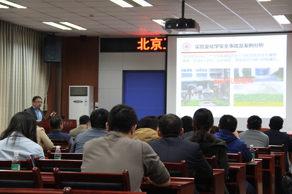 张耘副校长立足于学校安全稳定研判机制,指出由于实验室安全隐患具有燃点低、触点多、频次高等特点,又是人防、物防、技防三位一体的集中实验场所,因此实验室安全已列入学校安全稳定的主要任务之一。她指出,当前学校实验室安全管理现状反映了学科发展、科研水平的快速提升与实验室安全管理不平衡、不匹配的矛盾,学校实验室安全管理面临的还主要是规范化问题。她希望通过培训,能够转变实验室安全管理理念,使实验室能够真正成为助力学科建设与科研创新的安全平台。