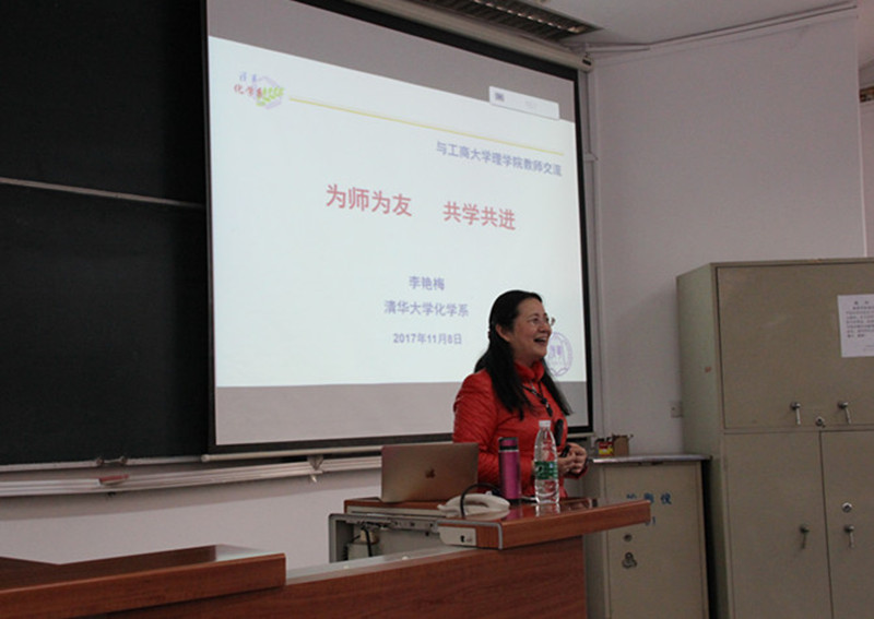 11月8日下午,理学院特邀国家级教学名师、清华大学化学系教授李艳梅带来“精彩一课”。李教授以《为师为友,共学共进》为题,分享了自己宝贵的教学经验和体会,理学院全体教职工共同聆听了此次报告。李艳梅教授以她主讲的《有机化学》课程为切入点,详细阐述了自己对于教学的思考和实践,正是出于发自内心的热爱与日复一日的坚持,将每一堂课都变成了最精彩的一课。教学方面,李教授总结了“从问题,到探索,到分析,到解决”,以及“引导学生随其思路一步一步往前走”的教学思路;面对学生,李教授认为应像朋友一样引导、关心并在意,真正将学生放在心里;展望未来,她谈到,随着科技日新月异的发展,慕课的出现将教学方式推进到新的阶段,大家要“多学习,多创新”,以保持在教学中与时俱进。李教授温柔而专注的教学风格、以心交心的教学理念深入人心,会场不时爆发热烈的掌声。老师们纷纷表示,面对学生,面对即将到来的评估小组专家听课评课,他们有了新的榜样。