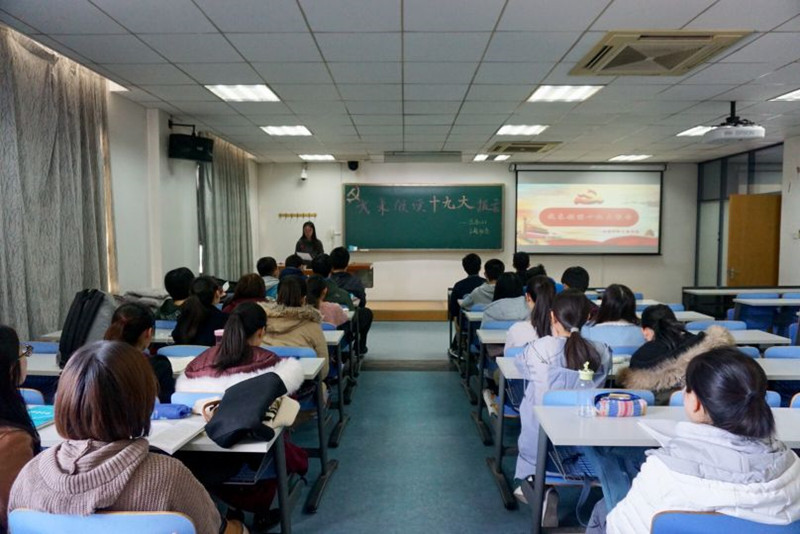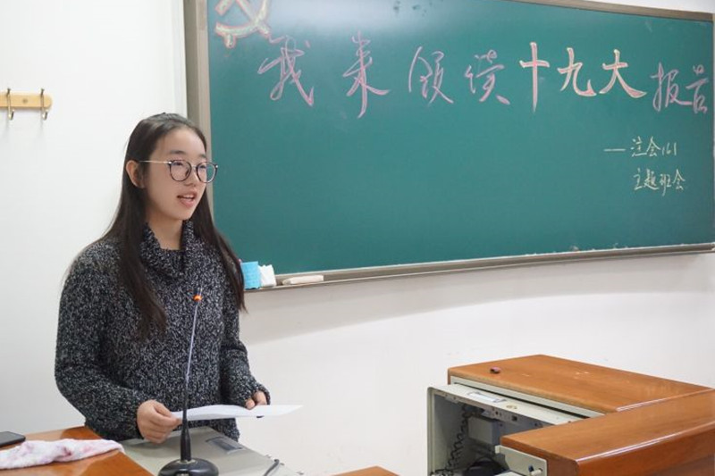 商学院各班级积极推进“我来领读十九大”班会,确保学生学习十九大精神全覆盖。同时引导学生们将思想和行动统一到十九大精神上来,不断谱写新时代商学院新篇章。