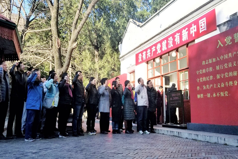 11月15日,党总支组织党员和入党积极分子共计40余人,前往香山双清别墅开展学习十九大精神主题党日活动,并结合后勤部门业务参观了北京植物园的部分园林景观建设区域。党总支书记吉涛强调了学习宣传贯彻十九大精神的重要意义,他指出本次活动是后勤部门党总支学习贯彻十九大精神系列专题活动之一,各支部要将十九大原文认真学习,结合后勤部门业务工作开展多种形式的支部活动;认真学习贯彻习近平总书记系列重要讲话精神,进一步加强党性修养,做一名合格党员。红旗飘飘向前看,党旗下面立誓言,吉涛带领后勤党员们在党旗下庄严宣誓,重温入党誓词。随后大家认真聆听工作人员的讲解,回顾了毛主席在双清别墅居住时的点点滴滴,以及我党在解放战争时期的艰苦条件下铸就的辉煌历史。党员们还参观了防空洞、京津冀红色展等主题展区,重温了七十余年前中国人民艰苦卓绝的革命历程,深刻体会了建国大业的来之不易。通过此次活动,党员们进一步了解了我们党取得革命胜利的光辉历史,极大地增强了作为一名党员的自豪感和使命感。