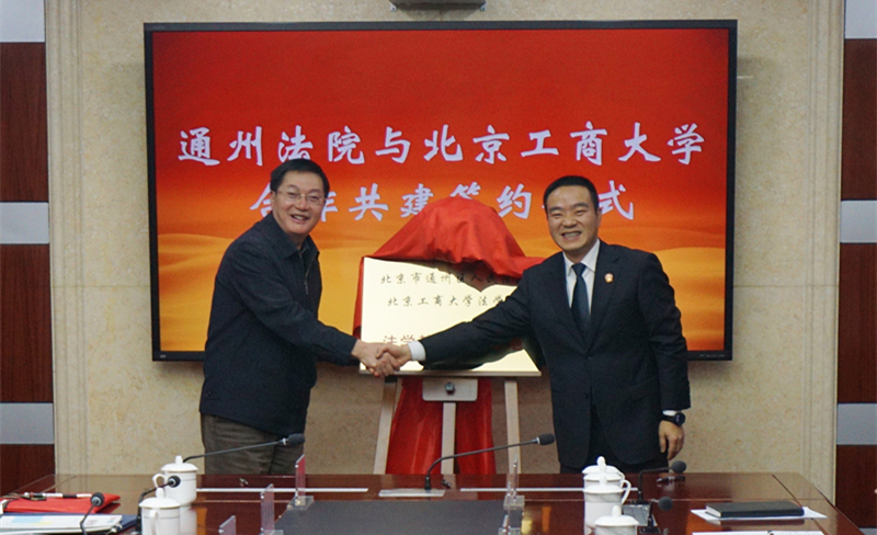 谢安平与张朝阳共同签署了《通州法院与北京工商大学合作共建协议》,双方将从应用法学培养机制、兼职交流机制、“双导师”制机制等方面进行合作,争取达到“院校共赢、优势互补”的双赢局面。李朝鲜与陈立如共同为“通州区人民法院与北京工商大学法学院法学教育实践基地”揭牌。最后,李朝鲜为通州法院副院长张朝阳、为法官李中华、陈汉东、翟新忠、孟强颁发研究生实践导师聘书,并由陈汉东法官作为导师代表发言,就双方人员的合作共建表达了自己的认识和对未来合作的良好期盼。