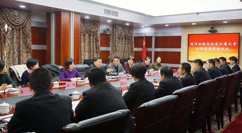 签约仪式上,李朝鲜副校长致辞,着重介绍了我校的办学理念、学校发展、师资队伍、课程培养及就业情况,对通州区人民法院在司法体制改革以来取得的成就给予高度评价,并表达了加强法学人才培养、增进学校与法院双向交流的合作愿望。谢安平院长十分感谢通州法院对法学院教学工作提供的大力支持,表示将以共建合作实践基地为契机,充分发挥实践课程对法学教育的重要作用,提升法律人才培养质量。通州区人民法院党组书记、院长陈立如介绍了通州区人民法院的基本情况,重点对近年来法院的业务能力、司法改革带来的发展变化、人才培养、学术成果等状况进行了说明。