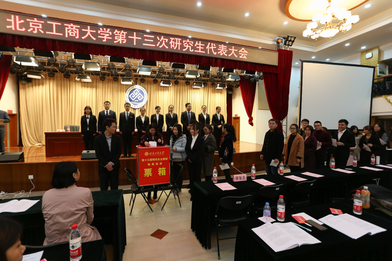 会议听取、审议并表决了《北京工商大学第十三次研究生代表大会代表资格审查报告》《北京工商大学第十二届研究生会委员会工作报告》《北京工商大学第十二届研究生会委员会经费使用报告》。大会经由第十三届研究生会主席团候选人竞选展示,通过代表无记名投票的方式,差额选举产生了我校第十三届研究生会主席团成员。