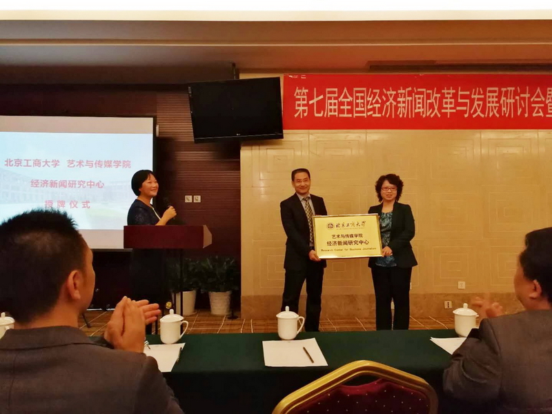 在主题活动环节,艺传学院院长罗子明为经济新闻研究中心正式授牌。他希望经济新闻研究要立足国内、放眼世界,对中国经济新闻传播和教育做出应有的贡献。经济新闻研究中心主任王擎向参会人员介绍了中心自2015年成立以来所做的宣传推广、学术活动、平台建设工作和取得的各项成果。
