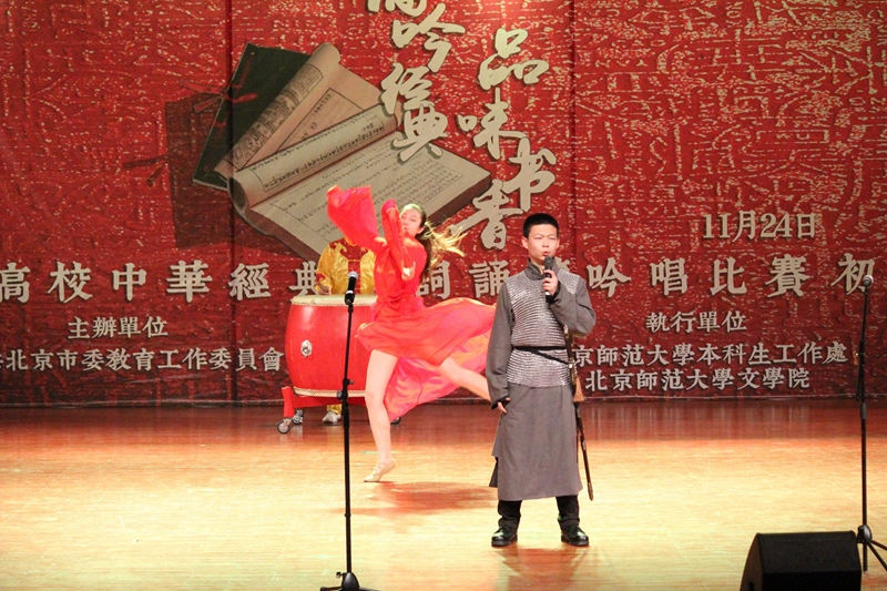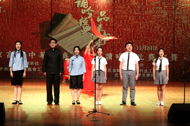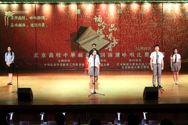 11月24日,北京市委教育工委举办的第二届“诵吟经典 品味书香”中华经典诗词诵读吟唱比赛初赛在北京师范大学举行,21支来自北京高校的学生队伍参赛。我校由艺传学院、商学院、理学院和计信学院9名学生组成的1支代表队经过初选成功入围,并以总分排名第十二名成绩荣获三等奖。这也是我校首次在此类比赛中斩获奖项。