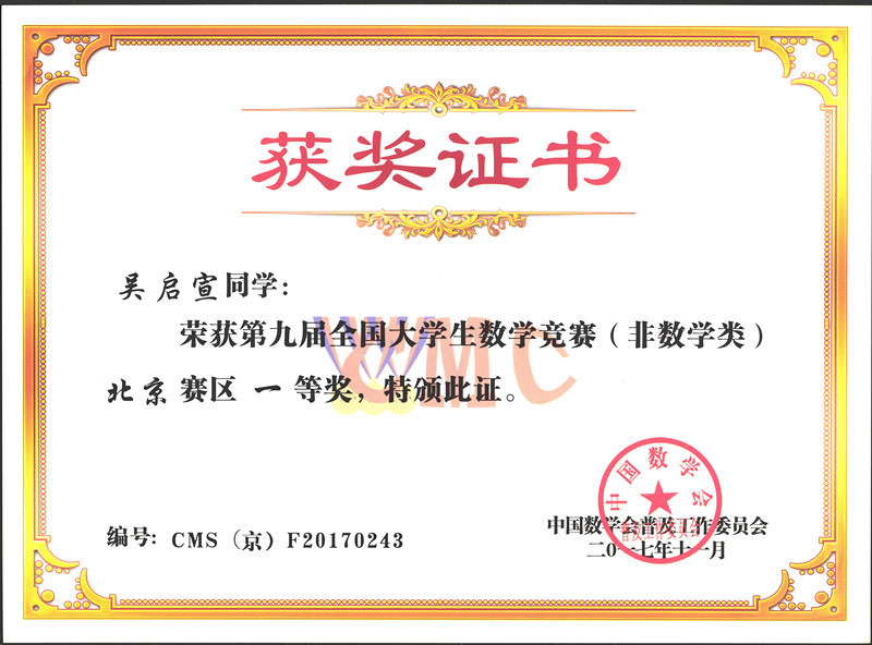 日前,2017年全国第九届大学生数学竞赛暨北京市第二十八届大学生数学竞赛获奖名单公布,我校有84名学生获奖,其中全国一等奖3项、二等奖3项、三等奖26项;北京市二等奖11项、三等奖41项,较去年获奖总数增加高达282%。据了解,我校有334名学生参赛,参赛人数为历年之最,赛前12位数学竞赛指导教师团队带领全体参赛队员进行了9项专题的集中培训。