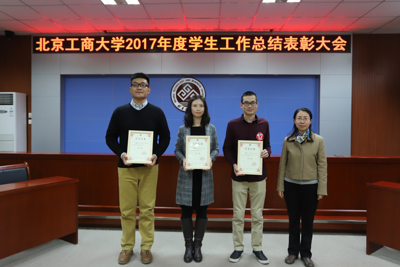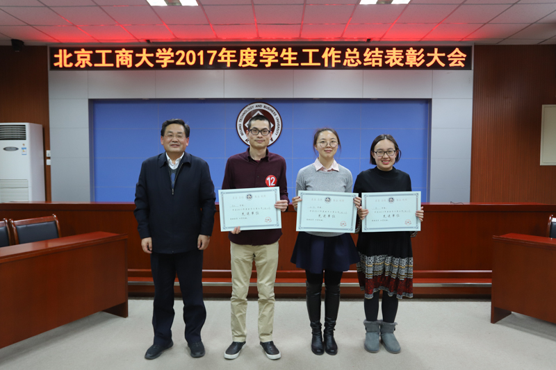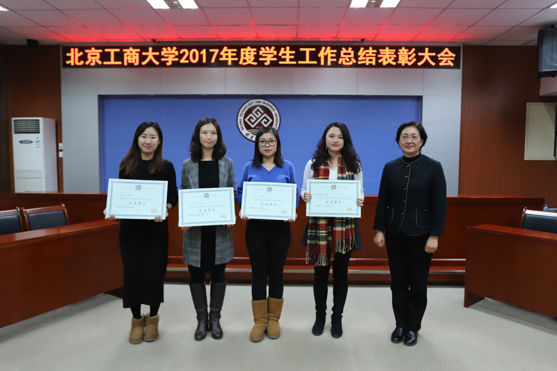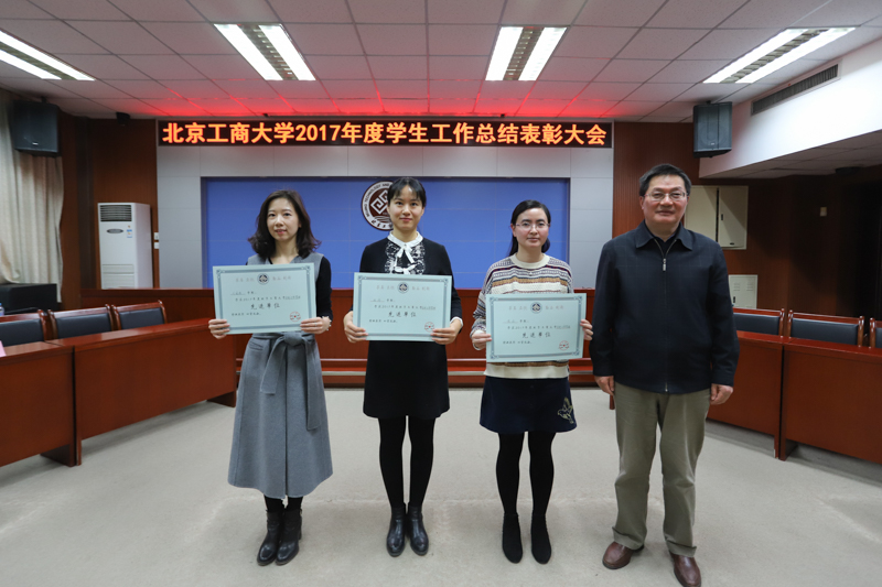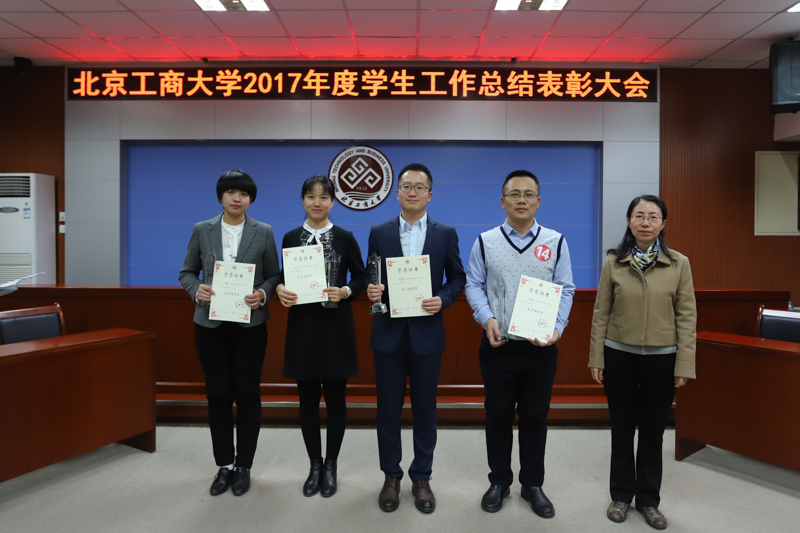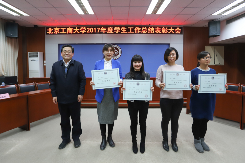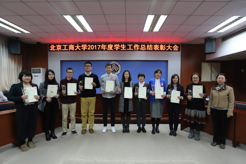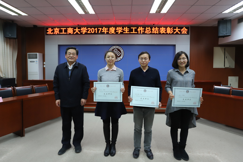 总结表彰环节,全体与会人员共同观看了2017年度学生工作总结视频。2017年学校获得北京高校心理素质教育工作先进单位、北京市征兵工作先进单位、北京高校国防教育先进单位、北京高校红色“1+1”活动优秀组织奖等荣誉称号,学生创业园被授予“北京地区高校大学生创业园高校分园”。学生工作队伍中有20余人次获得市级及以上荣誉,共发表论文13篇,其中3篇A刊。随后,张德玉副书记宣读了《北京工商大学关于表彰2017年度学生工作先进集体和个人的决定》,大会对2017年校内各专项工作获奖学院进行了表彰。
