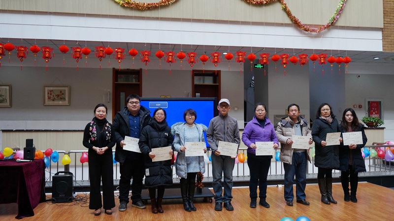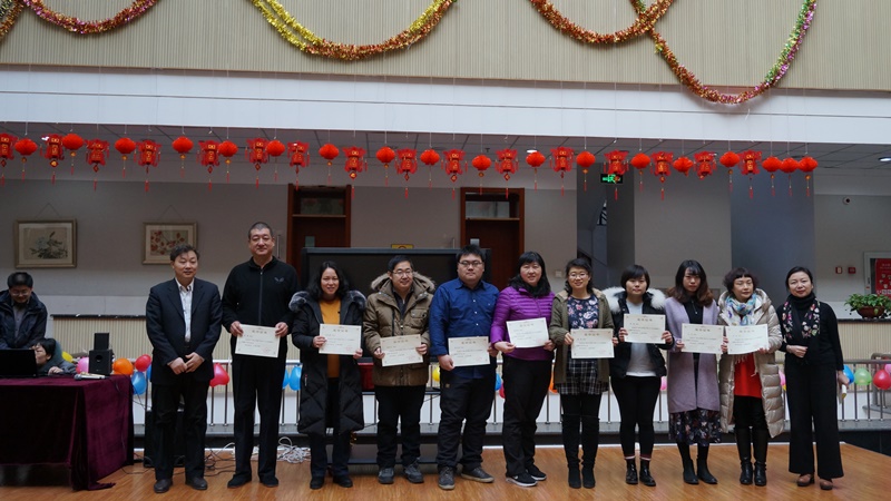 方德英副校长在总结讲话中对图书馆在各项工作中所取得的成绩给予充分肯定。他指出,过去的一年里,全体馆员秉承优良传统,紧跟时代步伐,注重思想引领,注重能力提升,注重科学管理,围绕中心,服务大局,在提供科研成果大数据分析、小图工作室、微信服务等辅助教学和科研工作中成效显著、特色鲜明,特别是协助申博工作做细做实,信息权威准确又及时,在注重基础工作创新的同时收获了科研和教育教学成果,做到了传统与现代相结合;同时充分利用勤工助学实践平台,如十九大召开当天举办的业务技能比赛中,勤工助学同学和老师一起参赛,老师发挥传帮带作用,同学在服务读者的同时,自身也得到锻炼和成长,做到了服务与育人相结合。他谈到,图书馆在班子的带领下,馆风馆貌和优质的服务得到师生的肯定,所取得的成绩是大家共同努力的结果。希望图书馆在2018年继续做好各项工作,让更多的师生读者热爱书籍、提高阅读兴趣,为学校需要提供更多信息服务。最后,他代表学校领导向图书馆全体人员提前致以新春的祝福。