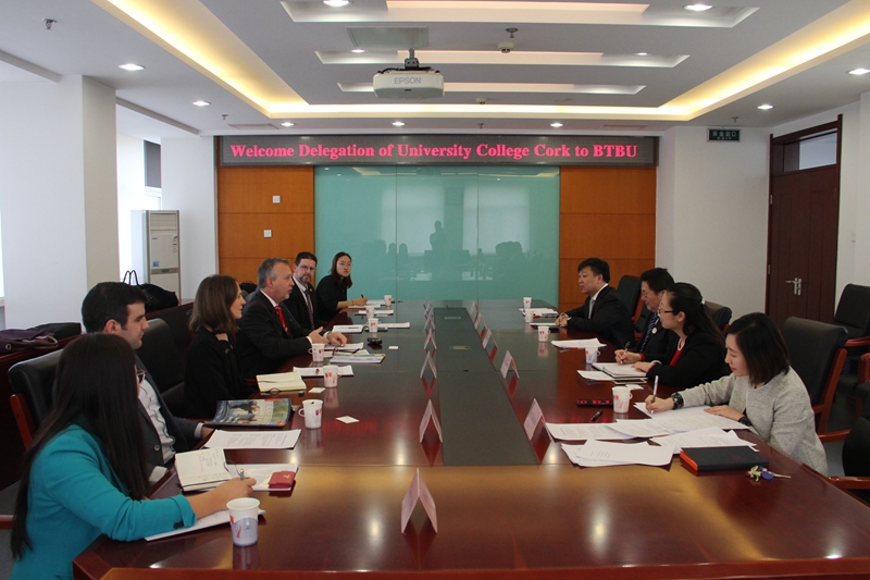 3月15日上午,爱尔兰国立考克大学国际办公室主任克里斯弗·布朗(Christopher Brown)和食品与营养科学学院院长保罗·麦克斯韦尼(Paul McSweeney)教授等一行七人访问我校。李朝鲜副校长在阜成路校区会见了代表团一行。