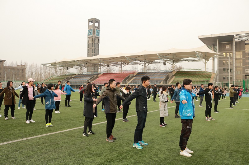 清晨6点40分,各学院学生在辅导员和学生干部的组织下,陆续开始了新学期第一次晨练活动,或跑步热身,或做操伸展筋骨,或组织跳绳、踢毽子、袋鼠跳等趣味活动。