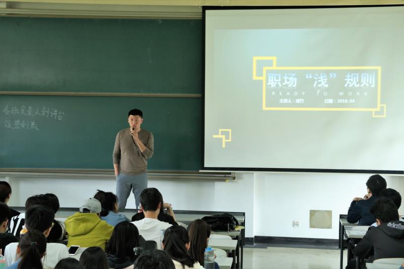 首场讲座中,成竹主任根据自己的经历展开,向同学们介绍了一些初入职场的小常识,比如:做事多想一步;清楚自己缺少的工作技能,在实践中锻炼提高;汲取他人经验,使自己少走弯路等。成竹为同学们介绍了如何让简历更加新颖、引人注目的制作方法,并解答了同学们提出的问题。成竹还将在后续的两次讲座中与同学们分享职场沟通能力、个人自我定位、跳槽、升职等内容。在场学生表示将把所学方法应用到实践当中去。