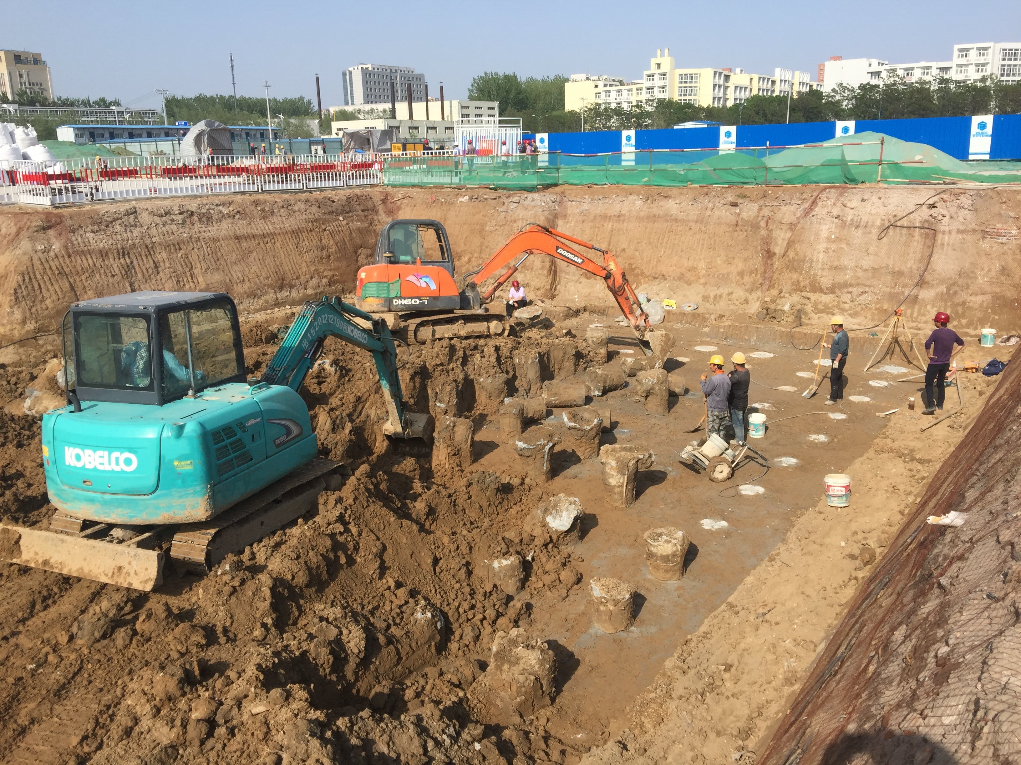 项目开工后,工作小组有关成员单位密切配合,在资金筹措、全过程跟踪审计、现场保卫、环境整治、网络信息化、设备购置、用户意见征求等方面保障良乡校区二期新建工程项目的顺利开展。目前四栋学生宿舍楼已完成CFG桩基础施工工作,待压桩试验完成出具报告合格后组织房山区建委质检站及相关参建单位进行基坑验槽工作。下一阶段将进行地下结构工程,预计6月下旬完成。