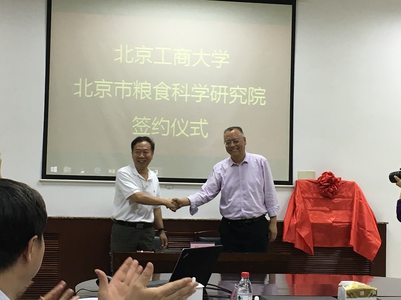 我校计信学院“光谱技术与食品品质快速检测团队”在刘翠玲教授的带领下自2011年就已经与京粮集团下属的北京市粮食科学研究院、古船食品有限公司、油脂公司等开展了不同程度的合作交流,进行了食用油、煎炸油、辣椒油、小麦粉等食品品质快速检测研究,本次签约及揭牌仪式的举行标志着双方在人才培养、科研成果转化等方面进一步规范化、深入化。