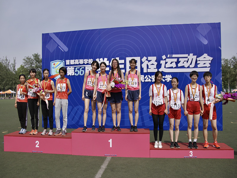 计信学院的张丽晶同学在女子乙组铁饼比赛中连续四年蝉联冠军,在女子乙组铅球比赛中获得第二名;经济学院郑鑫艳和杨千叶、艺传学院陈薏心、计信学院连继光四名同学组成的队伍获得了女子乙组4×400米接力第一名,并打破了维持九年的学校纪录;商学院的王融同学在三级跳比赛中获得了第一名、跳高比赛中获得第二名;艺传学院陈薏心同学在800米比赛中获得第一名;计信学院徐苏洋同学获得男子乙组跳高第二名。在女子乙组七项全能比赛中,经济学院文静获得第二名,计信学院王雪涵获得第四名的好成绩。此外,还有多名田径队员取得了北京市前八名的成绩,全体田径队队员们奋勇拼搏,以饱满的精神状态完成了比赛。