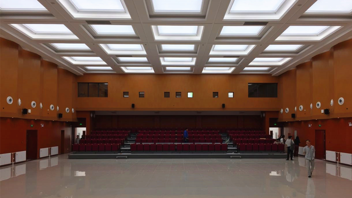 传承建筑历史,面向未来使用。项目保留建筑原有风格,外观修旧如旧,不仅满足于外观颜色及装饰挂板的还原,同时根据档案馆查阅的礼堂老照片,采用现代节能窗还原外窗分割形式,营造上世纪50年代建筑气息;建筑内配有现代化照明控制,采用大面积拉膜天花吊顶方式,可根据不同功能使用需求,调整舒适、均匀的照度;项目根据新规范配备多点位消防报警及响应、消防排烟及消火栓系统,提升建筑遇火情时的应急处置能力;建筑内预留有同声传译管路与功能用房,后期相应设备完善后可服务更高层次会议。