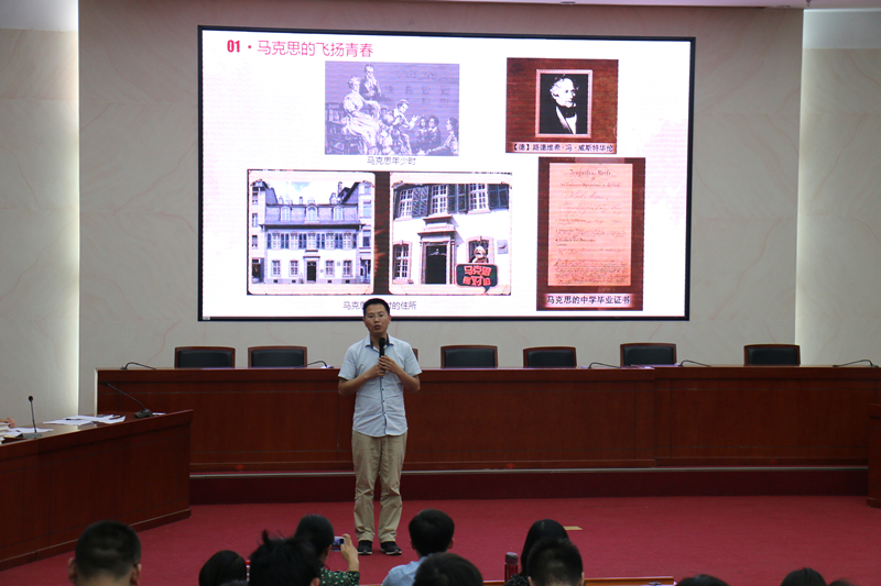 宣讲中,五位由辅导员和学生党员骨干担任的朗读者根据不同的主题,对于马克思的经典原著、书信史料,以及一些重要讲话等进行了现场演绎。经济学院王赛男老师朗诵的《共产党宣言》名句,让在场同学颇感震撼;商学院李璐老师对习总书记一段重要讲话的朗读,加深了同学们对马克思主义的理解;计信学院李玉娴老师对马克思关于中国革命的原著朗读,则引发了同学们对马克思主义的科学预见性的讨论。辅导员的深情朗读,让在场学生在接受理论教育的同时,也看到了自己辅导员“不一样”的一面。