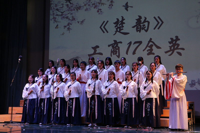 本次比赛,共分成古香词韵、峥嵘岁月与锦绣河山三个篇章。一首《念奴娇·赤壁怀古》拉开了比赛的序幕,雄浑苍凉,大气磅礴的诗词一瞬间吸引了同学们的注意力。凄凉雄浑的《楚韵》又仿佛把观众们带到了汨罗江畔。从清新悠扬《水调歌头》到深情款款的《太阳吟》,从豪气冲天的《少年中国说》到歌颂锦绣河山的《祖国啊,我亲爱的祖国》,沉醉在《还看今朝,中国梦》的同学们,又被《我爱我的祖国》发自内心的呼喊所唤醒。商院学子们在舞台上放飞青春,激昂澎湃,散发着大学生朝气蓬勃的青春活力。整个比赛如同一次对祖国波澜壮阔的历史回顾,以及对未来生活的美好畅想。同学们时而深情款款、时而激昂奋进、时而质朴自然,充分的展现了商院学子多才多艺的文学气质。