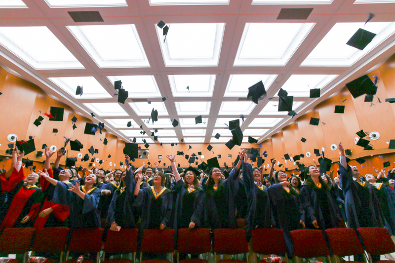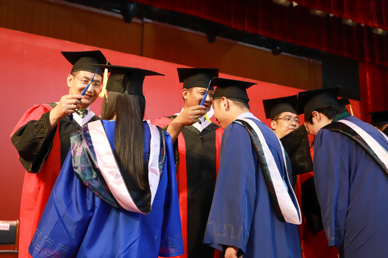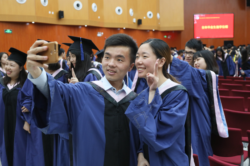 在激昂的乐曲声中,同学们身着学位服依次有序走上主席台,校领导、校学位评定委员会委员为他们扶正流苏并留下珍贵合影。学位授予仪式最后,在“我要飞得更高”的音乐声中,毕业生们欢呼着“毕业啦!”并一起把学位帽抛向空中,为毕业典礼画上了圆满的句号。鲜花、掌声、欢笑、泪水,礼堂里到处都是毕业的喜悦和分别的愁绪。