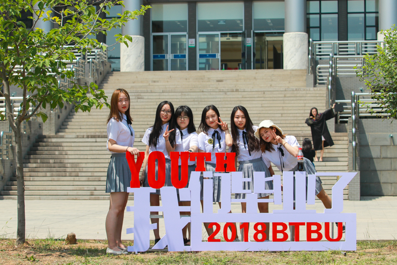 晚上6点,学生工作部精心策划的毕业典礼温馨暖场开始。毕业生代表演绎的一首首扣人心弦的歌曲飘荡在求知广场上空,身着学士服的毕业生们坐在台下,或静静聆听,或拍照留念,或互送祝福。此时,良乡校园里到处弥漫着离别和难舍的情怀。当《今夜舞起来》的音乐响起、“I love BTBU”的闪耀灯光出现在大屏幕上时,校舞蹈团学生们的动人舞姿仿佛把2014级的同学们带到了2015年的那个夏天,那段洒下汗水、收获感动的青春岁月。
