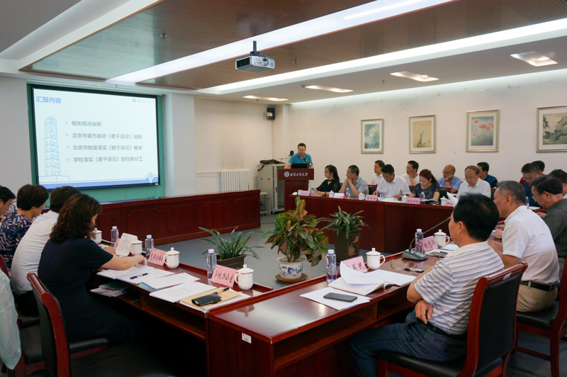 为贯彻落实市委市政府《关于统筹推进北京高等教育改革发展的若干意见》(以下简称《若干意见》)有关要求,全面推动学校办学定位、深化内部改革、激发内生动力、实现高质量发展,8月1日学校召开落实《若干意见》工作会,会议由校长孙宝国主持,副校长谢志华、李朝鲜、贾英民,以及相关职能部门和各学院负责人参加会议。
