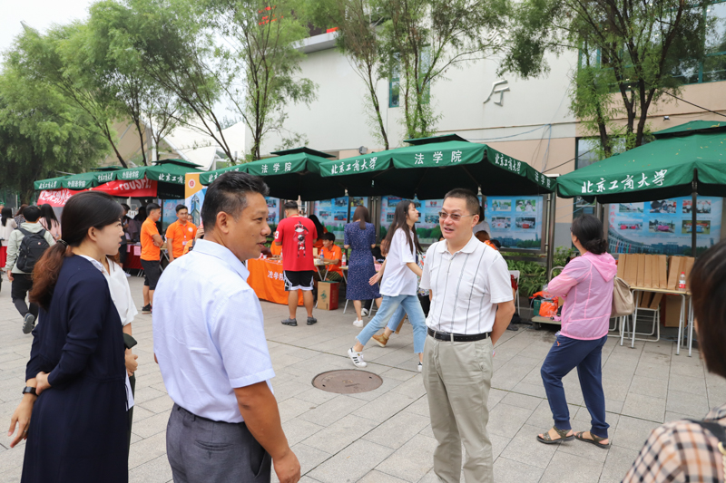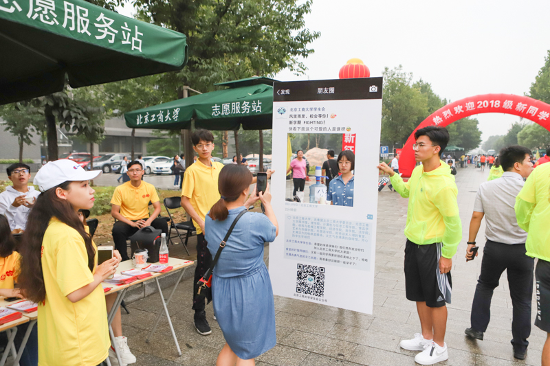法学院在开学前就举办了直播逛校园的活动,给每位新生的宿舍门上都贴了温暖的寄语,准备了新老生见面会来帮助新生熟悉法学院这个大家庭;外国语学院迎新工作围绕“安心,暖心,贴心”三心原则,结合学院“新相见,梦飞young” 迎新主题,打造学院2018特色迎新工作,学院还为新生们搭建Lucky Pick祝福墙,希望能够将外语精神渗透进学生生活中的点滴;艺术与传媒学院的“北工商校园集章活动”带着萌新们踩点各个教学楼,迅速熟悉校园,学院设计专业教师和学生共同制作的报到指南在展示专业特色的同时,也让新生们更加了解和热爱自己的专业。刚刚打卡回来的设计183 李炜滢告诉记者:“学院设计的这个指南很漂亮,走了一圈,感觉学校环境很好。”