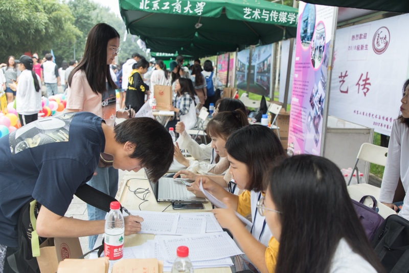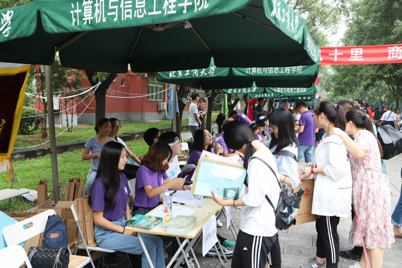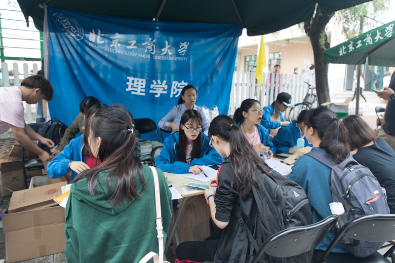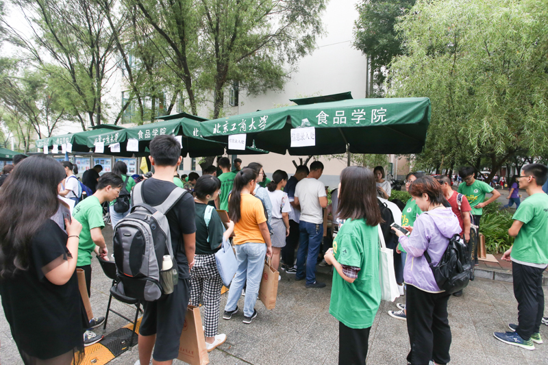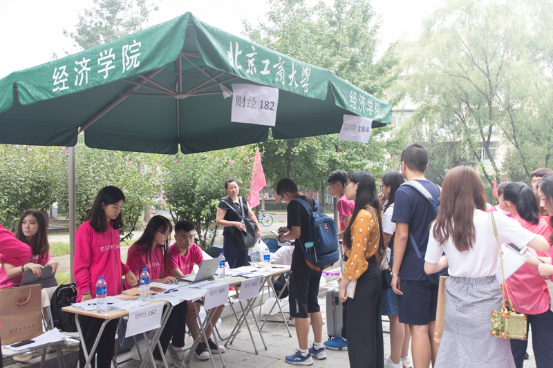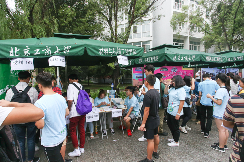 食品学院只有大一新生在良乡校区学习,为了能够帮助新生们顺利完成报到,学长学姐们一大早从阜成路校区赶过来为新生们提供帮助。理学院、材料与机械工程学院和计算机与信息工程学院的报到处,新生们在老师和学长学姐的引导帮助下有条不紊地进行着报到;经济学院漂亮的气球装饰是熙攘人群的一抹亮色;商院的身着老虎玩偶服的激萌志愿者很大程度的帮助新生们缓解了紧张的心情,党员爱心工作站也引来新生和家长关注。
