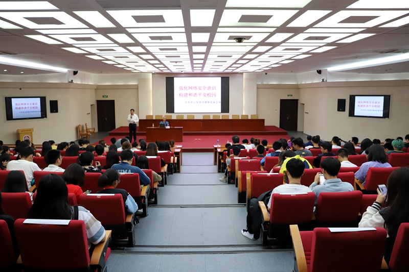 9月18日,是国家网络安全宣传周网络安全校园日,由网络中心、学生处和团委联合举办的网络安全知识进校园活动之一----网络安全知识讲座在良乡校区举行。北京市公安局内部单位保卫局办公室副主任、高级工程师段继亮以“强化网络安全意识,构建和平安全校园”为题,受邀为同学们进行了精彩的讲座。讲座由网络中心主任李海生主持。