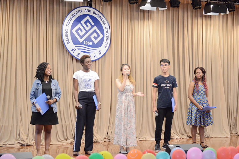 留学生新生代表露娜和老生代表Jessica发言。露娜表达了在北京工商大学学习的美好憧憬与感谢,Jessica分享了在北京工商大学学习的生活和经验,鼓励新生多参加活动,结交朋友,并共同祝愿每一位师生中秋快乐。
