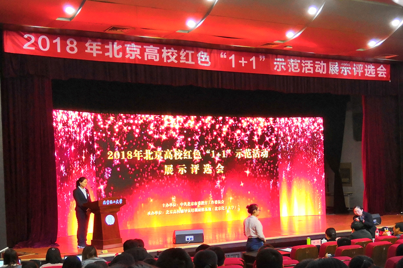11月28日下午,由北京市委教育工委开展的以“不忘初心 牢记使命,勇做担当民族复兴大任的时代新人”为主题的北京高校红色“1+1”示范活动展示评选会在北京化工大学举行。经北京56所高校指导、总结、推荐的1313个学生党支部参与了今年的活动,有25个党支部入围了最后的评选会。我校经济学院本科学生16级党支部脱颖而出,再次荣获一等奖。2018年北京高校红色“1+1”示范活动展示评选会在我校科学会堂举行。市委宣传部、市委教工委、市委农工委、团市委、首都文明办等相关部门负责人应邀担任评委。各高校主管部门负责人、学生党支部代表、媒体代表共400多人参加了评审会。