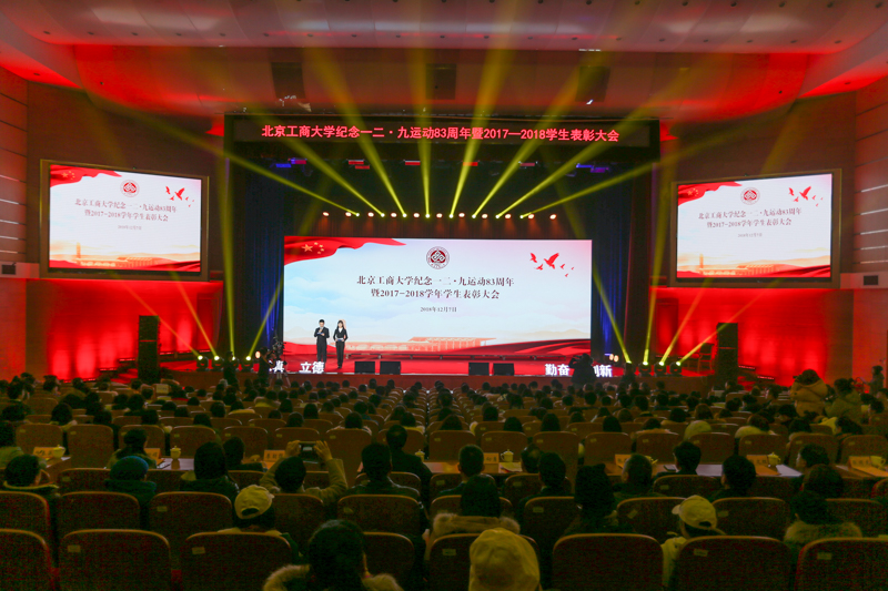 为激励大学生继承和弘扬爱国精神,表彰先进,12月7日,学校纪念一二·九运动83周年暨2017-2018学年学生表彰大会在良乡校区隆重召开,会上表彰了7类获得市级以上奖项的学生集体和个人。学校党委书记谭向勇、校长孙宝国、党委副书记张德玉、副校长李朝鲜、郑文红、党委副书记董竹娟出席活动,并为获奖学生颁奖。相关职能部门负责人、各学院党政领导、教师代表、获奖学生代表、本科生及研究生代表一同参加活动。