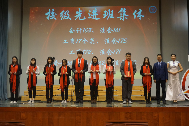 大会表彰了2017-2018学年国家奖学金、商科才俊奖学金、三好学生、优秀学生干部、社会工作奖、何铁文奖学金、先进班集体、英语四六级先进班级和团队、优秀学生奖学金获得者及“商院之星”。学院党政领导、院团委书记、系主任宣读表彰决定,并对获奖班级和个人表示祝贺。与会领导、班主任和辅导员共同为获奖班级和学生颁奖并合影留念。