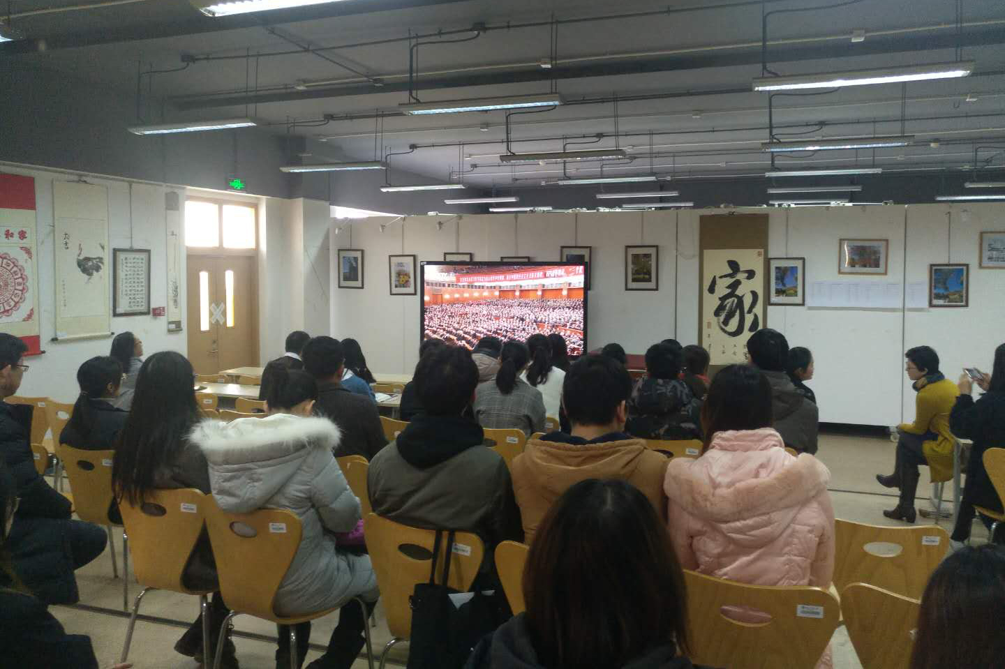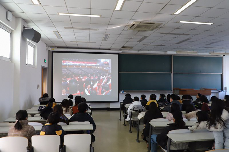 收看直播过程中,大家聚精会神,认真记录讲话要点,现场不时响起热烈的掌声。直播结束后,师生们心潮澎湃、无比激动,为改革开放40年来的沧桑巨变感到骄傲,对未来发展充满信心和干劲。作为改革开放同龄人,外国语学院党总支副书记任金晶谈到:“40年前的今天正是我出生第二天,成长过程中始终伴随着一个词改革,我为伟大的党、伟大的祖国开创的改革开放大业骄傲和自豪。作为一名高校基层党建工作者,要努力为教育事业奋斗终身。”食品学院教师王蓓收看大会后表示:“作为一名出生在80年代初期的青年党员教师,能够看到国家在改革开放的征途中披荆斩棘、风雨兼程、一路高歌是非常幸运的。我们这一代人在见证国家强大的同时也享受着改革开放带来的各方面红利。身为一名高校教师,我们要为培养更多优秀的共产主义事业接班人不懈奋斗。”材机学院党务秘书周黎老师说:“40年来,中国人民在中国共产党的领导下迎难而上,不断谱写出新篇章。通过观看,深深为40年来祖国翻天覆地的变化感到骄傲和自豪。庆祝改革开放40周年,是致敬历史的纪念,更是再启征程的出发。作为高校育人工作者,我们要以昂扬的精神状态扎实做好育人工作,努力向新时代交上自己的答卷。”