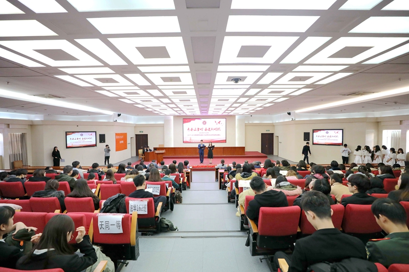 学院精心制作的采访视频展示了学院之星、校级三好学生、优秀学生干部们勤奋学习、积极实践、热心公益、团结奋进的风采,“北京高校优秀示范班集体”法学164班的参赛视频更是向大家展示了追求卓越的求索精神和法学专业情怀,让大家更加贴近了这些优秀学生的生活,深感荣誉背后的艰辛和奉献,赢得了在场师生的阵阵掌声。