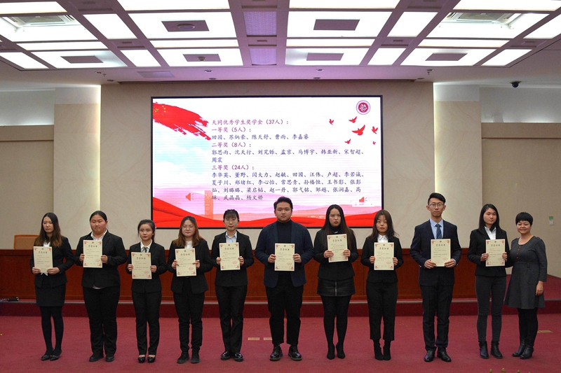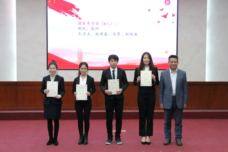 学院党委书记文四英宣读表彰决定。今年,法学院共有6人获得国家奖学金,14人次获得市级表彰,224人次获校级表彰,法学164班获“北京高校优秀示范班集体”称号,8641学生宿舍获评北京高校优秀学生基层组织(宿舍)。胡朝新、陈敦两名老师获学校优秀班主任,陈敦老师同时获学校十佳班主任。