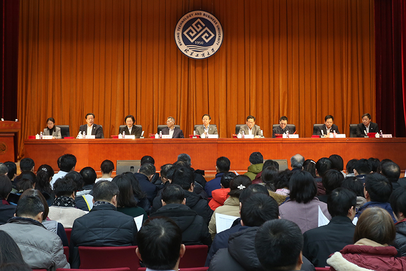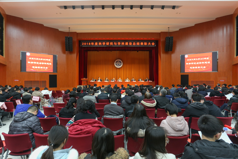 1月15日,学校2018年度科学研究与学科建设总结表彰大会在阜成路校区召开。学校领导孙宝国、张德玉、谢志华、李朝鲜、张耘、郑文红、贾英民、方德英、董竹娟出席大会,并为获奖教师颁奖。全体中层干部、全体教师党支部书记、各学院教师、学科秘书、科研秘书以及研究生代表参加大会。副校长郑文红主持总结表彰大会。