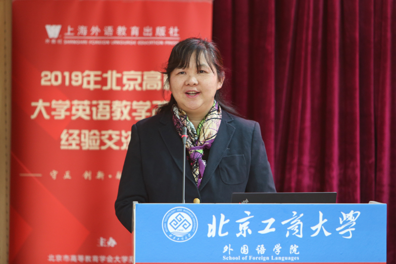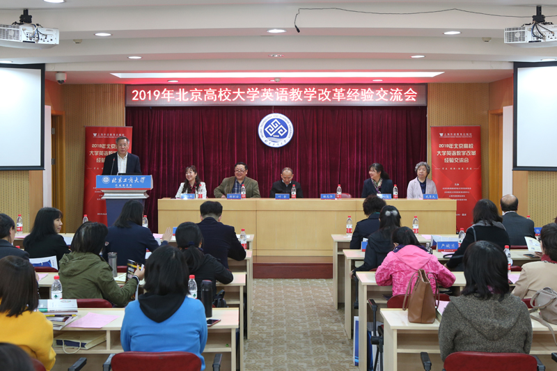 4月4日,由北京市高等教育学会大学英语研究会、北京高校大学英语教育发展中心、上海外语教育出版社和我校外国语学院共同举办的2019年北京高校大学英语教学改革经验交流会在阜成路校区召开。会议以“守正 创新 融通 共进”为主题,探索新时代大学英语教学如何坚守本质,并在砥砺前行的征途中不断创新。我校副校长谢志华教授、北京市教委高教处处长刘霄、北京市高教学会大学英语研究会理事长张文霞教授、北京高校大学英语教育发展中心主任张喜华教授、上海外语教育出版社副社长叶青出席会议。