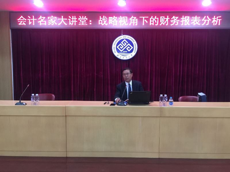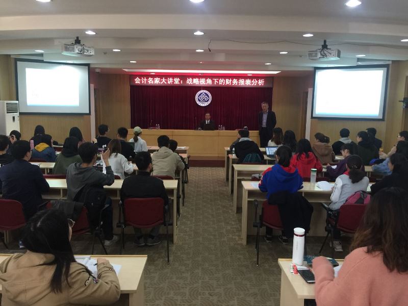 4月10日,商学院在阜成路校区举办会计名家大讲堂系列讲座,邀请财政部会计名家、对外经济贸易大学副校长、教育部高等学校会计学教学指导委员会副主任委员张新民教授到我校作了题为“战略视角下的财务报表分析”的学术报告。副校长谢志华教授出席并主持了报告会,商学院财务与会计学科部分教师,MPAcc、会计学、财务管理等专业研究生共100余人参加了本次活动。