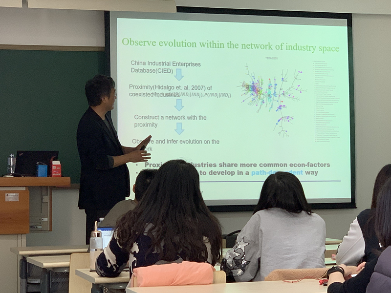 石磊副教授就职于清华大学环境学院,担任国家环境保护生态工业重点实验室清华分室主任、中国生态学会产业生态专业委员会主任、《Journal of Industrial Ecology》亚洲办公室主任、《Journal of Cleaner Production》副主编以及第10届国际产业生态学大会主席(2019),主持生态工业园区、循环经济和水专项等四十余项课题。讲座中,石磊副教授首先介绍了工业生态学的学科概念及其发展概貌,详细论述了工业生态系统的复杂性,并结合丹麦、韩国以及中国宜兴市工业产品演化路径,生动细致的讲解了工业生态系统复杂性的研究方法以及工业生态学在复杂工业生态系统中的成功应用。最后,提出了中国工业生态化的迫切需求以及相关政策的启示启发。