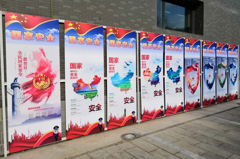 4月11日,保卫处在两校区布置“4.15全民国家安全教育日”主题图片宣传展板,利用两校区电子大屏滚动播放主题标语,介绍《国家安全法》《国家情报法》《反恐怖主义法》《反间谍法》等相关法律知识。通过海报、展板向全校师生普及国家安全相关知识,深入推进国家安全意识入脑入心。