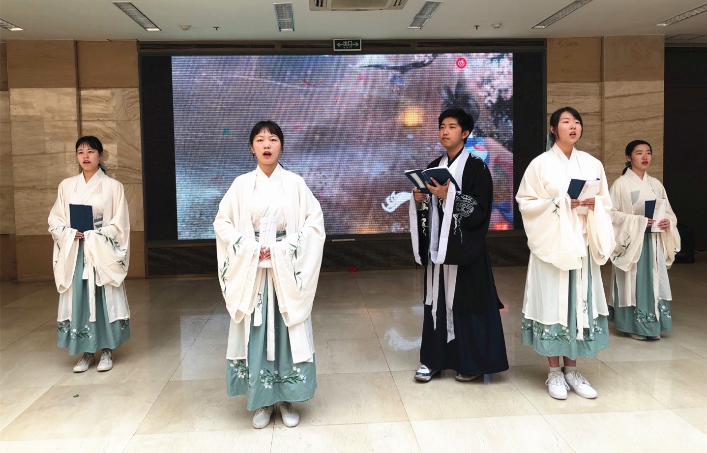 活动在图书馆小图工作室学生们的经典诵读《墨梅》中拉开序幕,诵读者们以充满诗意的语言,饱含深情的朗诵,真挚表达了大学生对于阅读的热爱和感悟。第三届朗读者大赛一等奖得主赵亚欣同学带来的朗读《我愿意是激流》,语言豪迈,声韵柔婉,激荡着每一位观众的心灵。第二届微书评大赛特等奖得主吕锦睿同学以一篇《三国,不只是大人物的舞台,小人物同样很精彩》为题的演说,声音浑厚,气势恢宏,再现了传统文化的经典,也让观众仿佛置身历史现场与英雄产生共鸣。随后,校学生会主席陆聪代表全校青年发起读书倡议,让阅读无处不在,让阅读随时发生,为人生精彩、学校发展、民族复兴而读书。