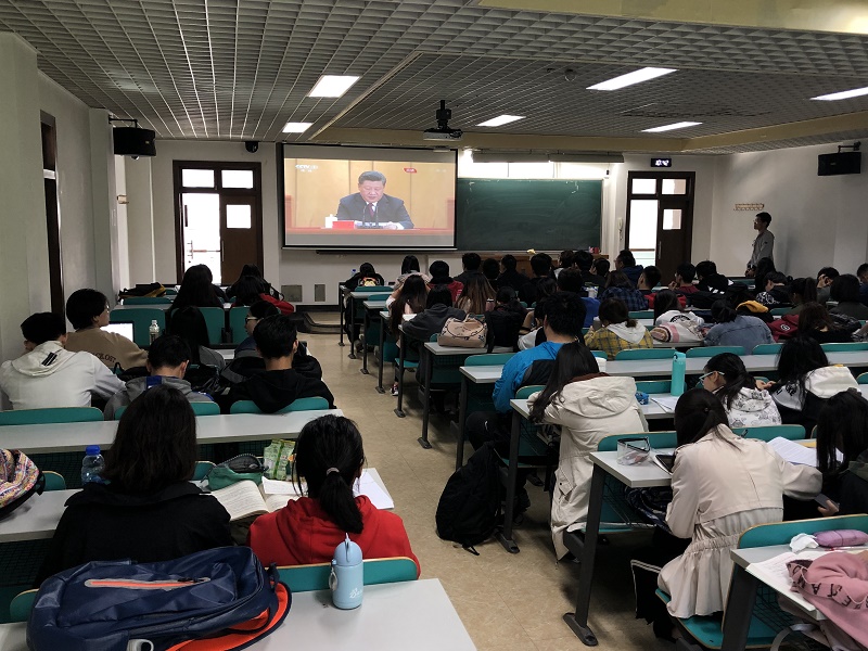 学校党委理论中心组成员集中收看了大会盛况,机关党委、各分党委、党总支、直属党支部根据学校党委的通知要求,结合工作情况,认真组织党员、干部和师生员工,在两校区的报告厅、会议室、教室等近20个会场集中收看庆祝大会实况,聆听总书记的讲话,深刻领会五四精神。收看直播过程中,大家聚精会神,悉心聆听,与总书记一起深切缅怀五四先驱崇高的爱国情怀和革命精神,深刻理解五四运动的历史意义,用心铭记总书记提出的新时代发扬五四精神的重要要求和对当代青年的深情寄语。