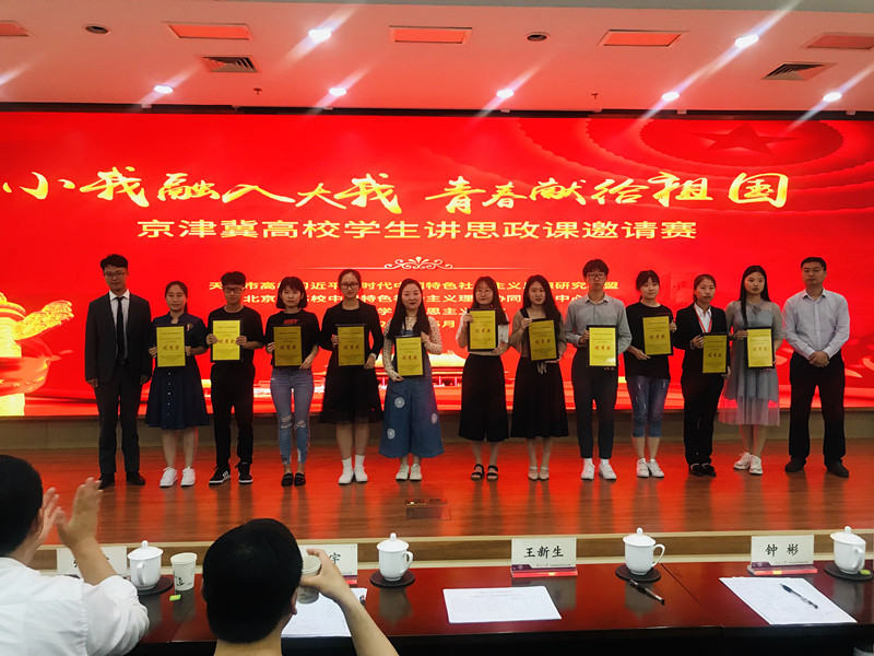5月24日、25日,“小我融入大我,青春献给祖国”为主题的首届京津冀高校大学生讲思政课邀请赛于在南开大学举行。我校选派两支学生团队在马克思主义学院副院长姚洪越的带领下参赛。经过激烈的角逐,2018级包装工程专业本科生李冰玉团队《做时代新人 创造有价值的人生》获得三等奖,2018级马克思主义中国化研究专业硕士生张如倩团队的《以绿色发展理念推进“千年大计”》获得优秀奖。