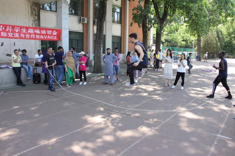 5月22日,2019中外留学生趣味运动会在阜成路东区操场举办,中外学生近60人参与比赛。