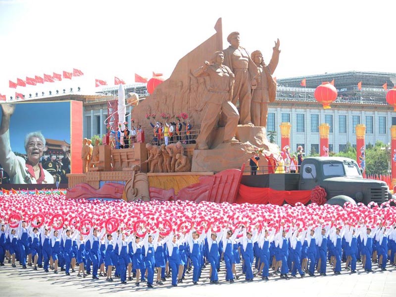 100天的艰苦训练,238步的完美表演,成就了69秒的辉煌。2009年,根据北京市的要求和市委教育工委的安排,我校承担3项新中国成立60周年庆祝活动任务,共选派2347名学生参加活动。其中,选派2156名学生参加房山区群众游行“艰苦创业”方阵,80名学生参加广场合唱方阵,50名学生参加广场联欢方阵;另外还派出61名学生参加房山区长阳镇的集体舞方队。