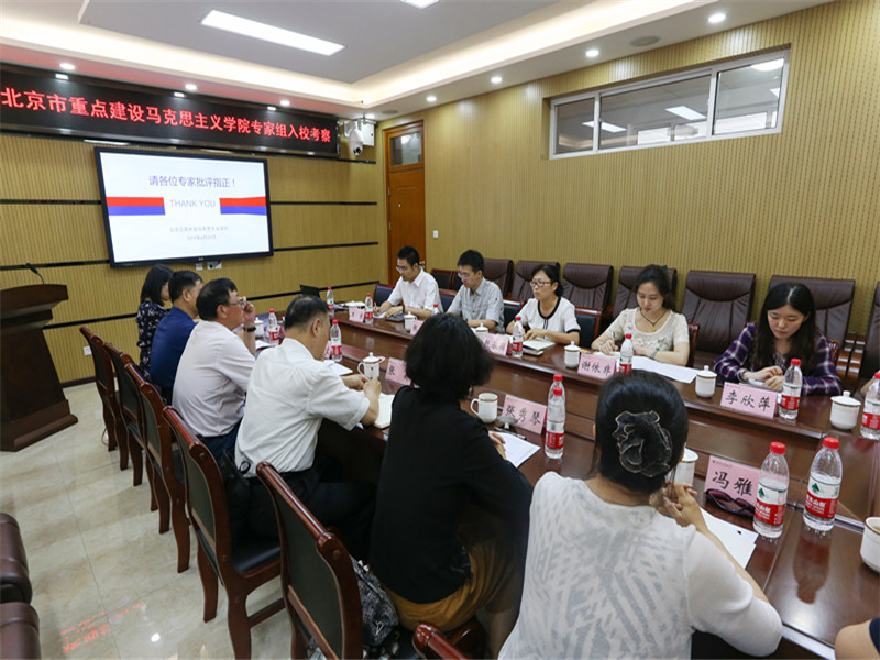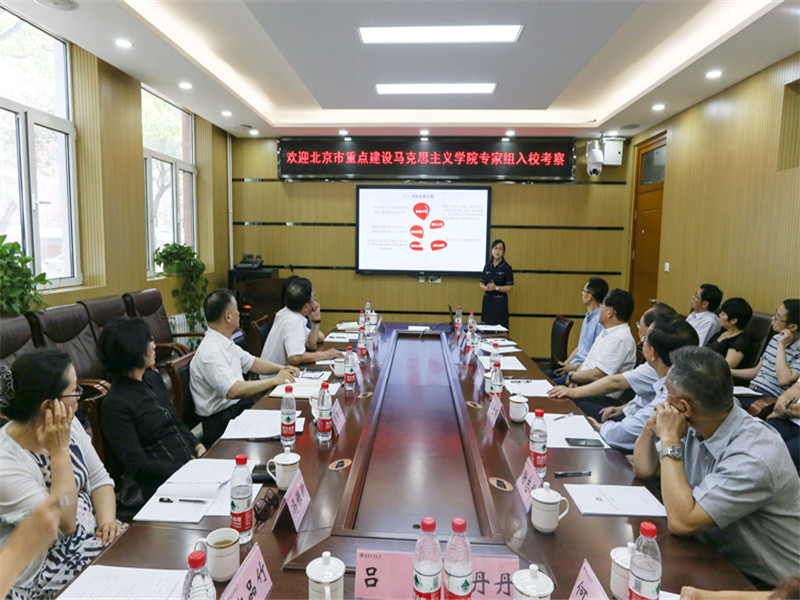 马克思主义学院院长王鲁娜从学院历史沿革、师资队伍建设、学科建设、理论教学、实践教学、人才培养、社会服务、建设规划等方面,详细汇报了马克思主义学院成立以来的各项工作与成绩。她表示,未来马克思主义学院将以师资队伍建设为抓手,以课程建设为核心,以学科建设为依托,以人才培养为目标,以理论宣传为使命,进一步加强马克思主义学院建设,力争建设具有鲜明特色的北京市重点马院,不负重托,不辱使命。