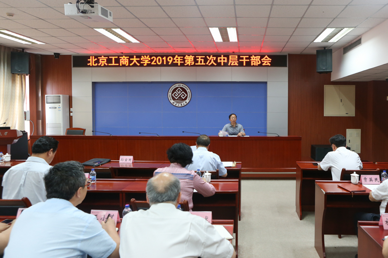 校长孙宝国总结本学期学校工作,部署暑假学校重要工作。孙宝国校长对在新的岗位上履职的中层干部表示祝贺,对因各种原因离开中层干部岗位的同志表示感谢。他谈到,新聘任干部未来履职的四年是北京工商大学发展历史上非常关键的四年,他勉励同志们要不忘初心,牢记使命,勇于担当,砥砺前行,不断提升学校的人才培养质量、学科建设水平、办学层次、服务社会水平,提升学校的社会声誉和影响力。