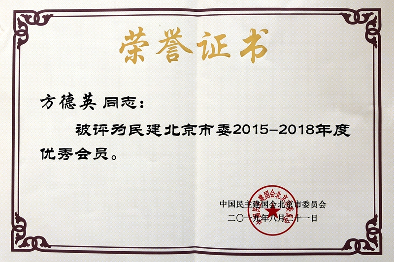 8月21日,北京市民建组织成立70周年纪念大会召开。会上对2015—2018年度在会务工作中取得突出成绩的基层组织和会员进行了表彰。我校方德英、王简获评民建北京市委优秀会员。