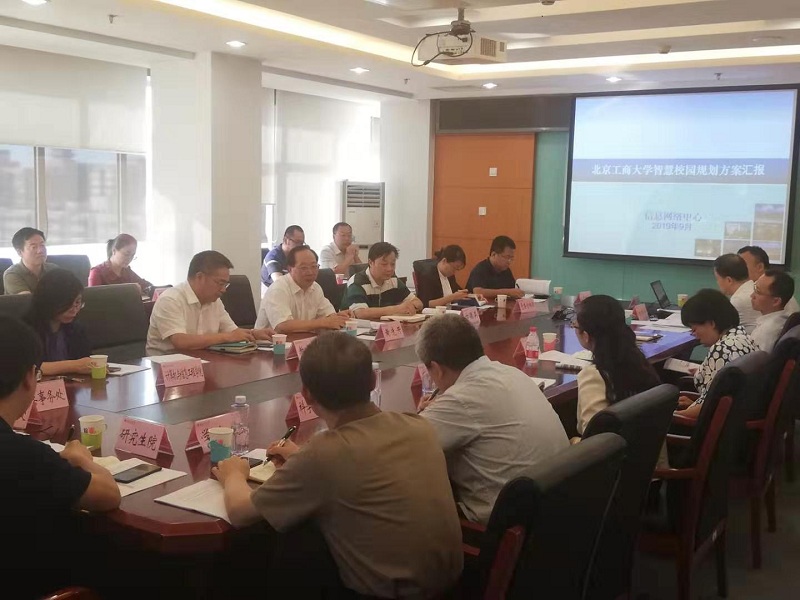 网络安全与信息化领导小组办公室主任李海生从智慧校园总体建设目标、学校信息化现状和需求、建设方案、建设内容、方案特点、建设预期效果,以及建设推进计划等七个方面,对智慧校园规划方案进行了汇报。与会人员踊跃发言,结合工作实际,对《北京工商大学智慧校园规划方案》提出具体意见和建议。