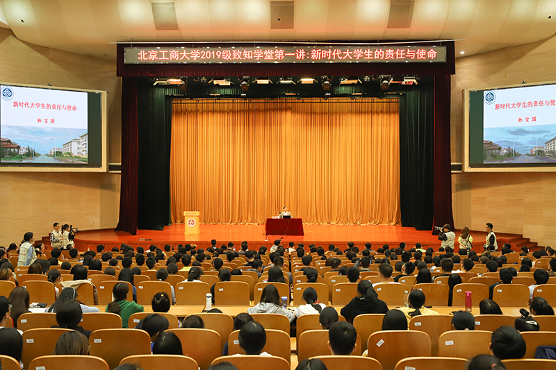 10月8日,2019级致知学堂第一讲在良乡校区拉开帷幕,校长孙宝国院士为同学们做了题为“新时代大学生的责任与使命”的专题讲座。